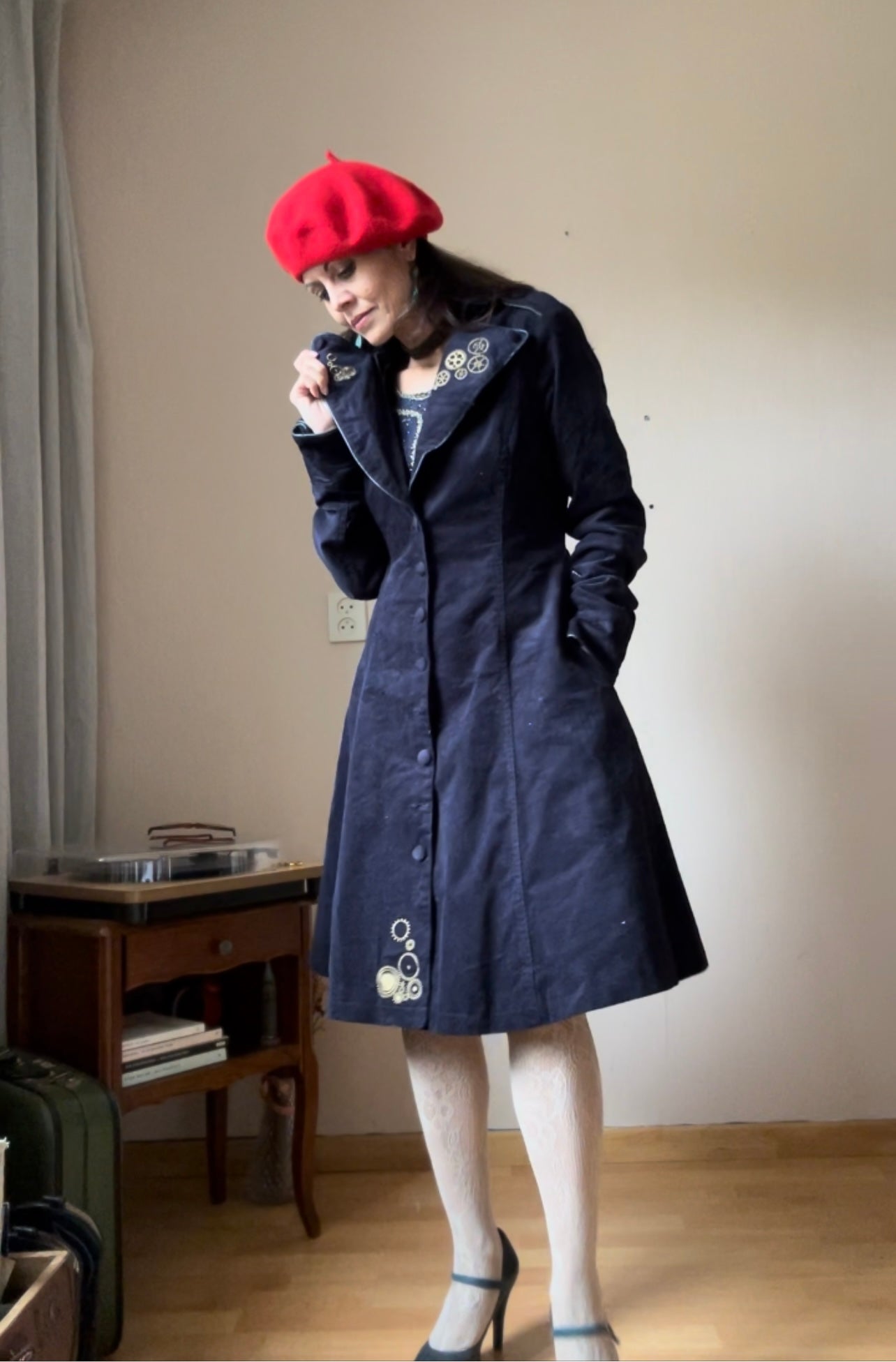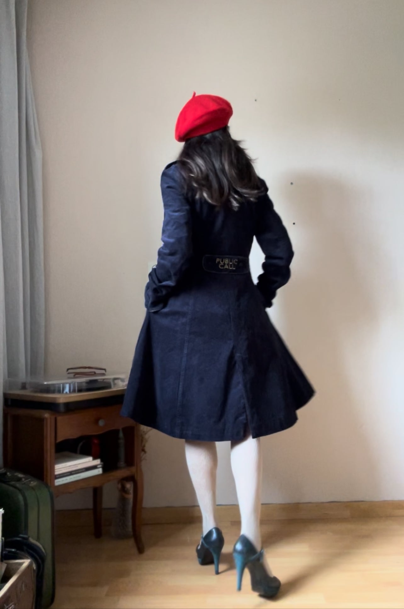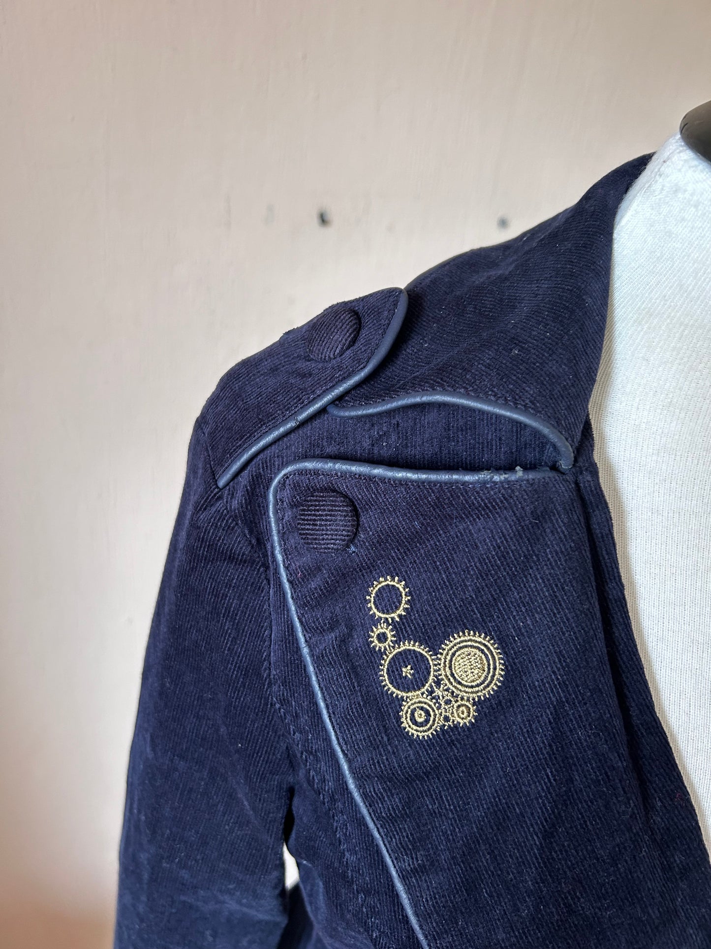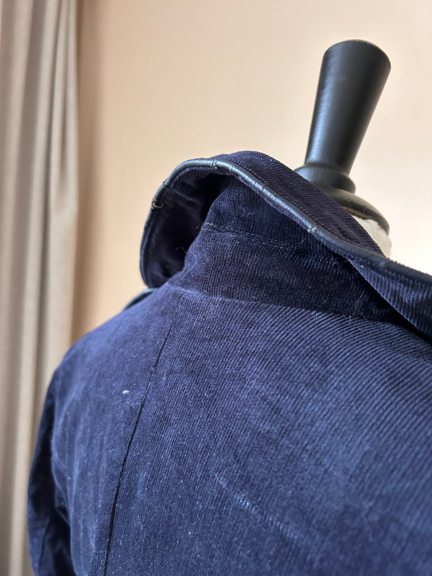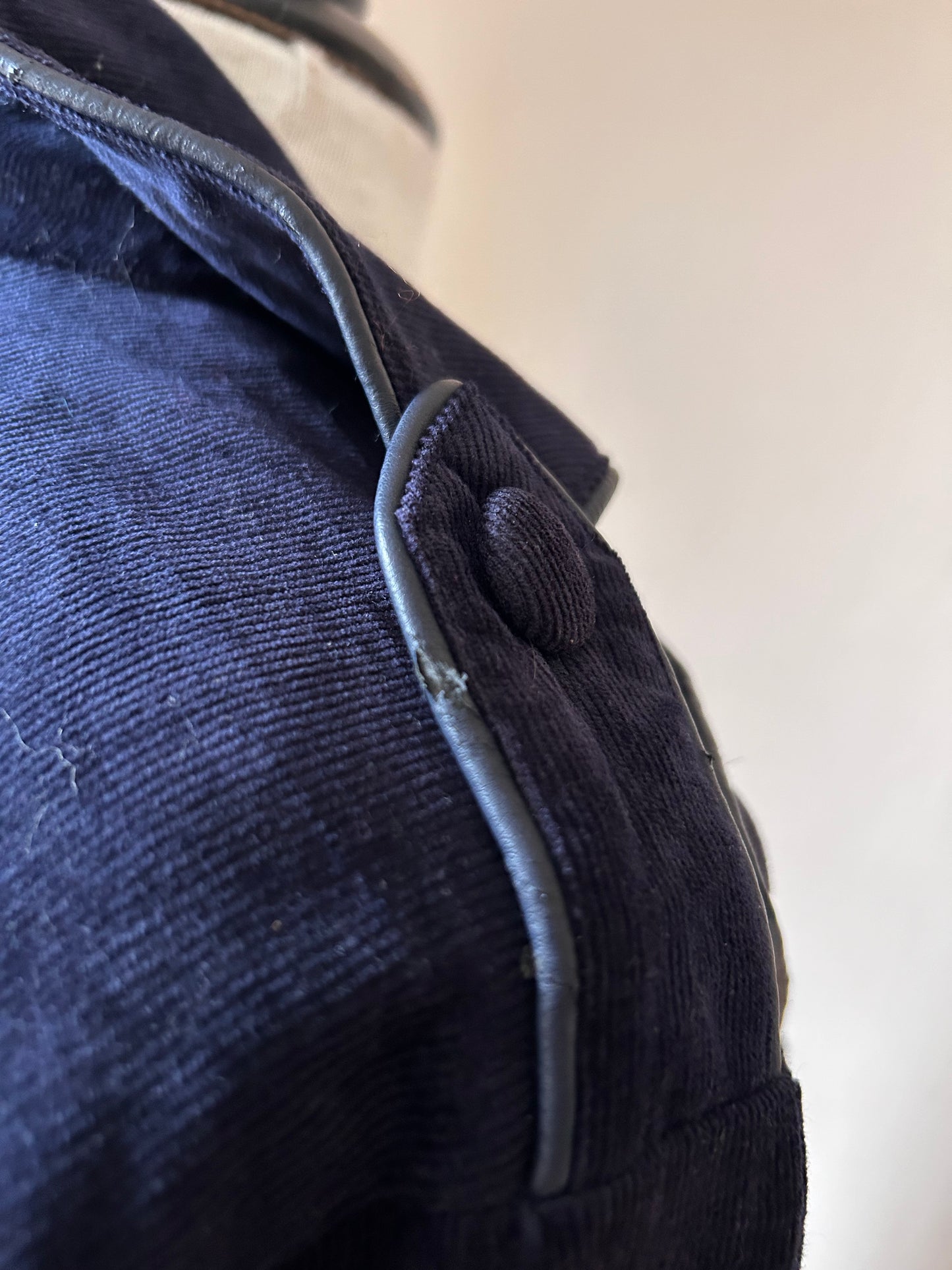 Actually it is worn maybe once but due to time the leather lines on the shoulder and collars have worn and tired a little. Since it is navy dark color they are not disturbing and only visible to a very careful eye.