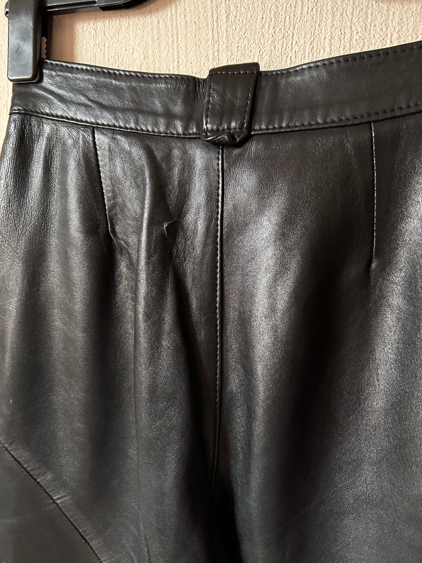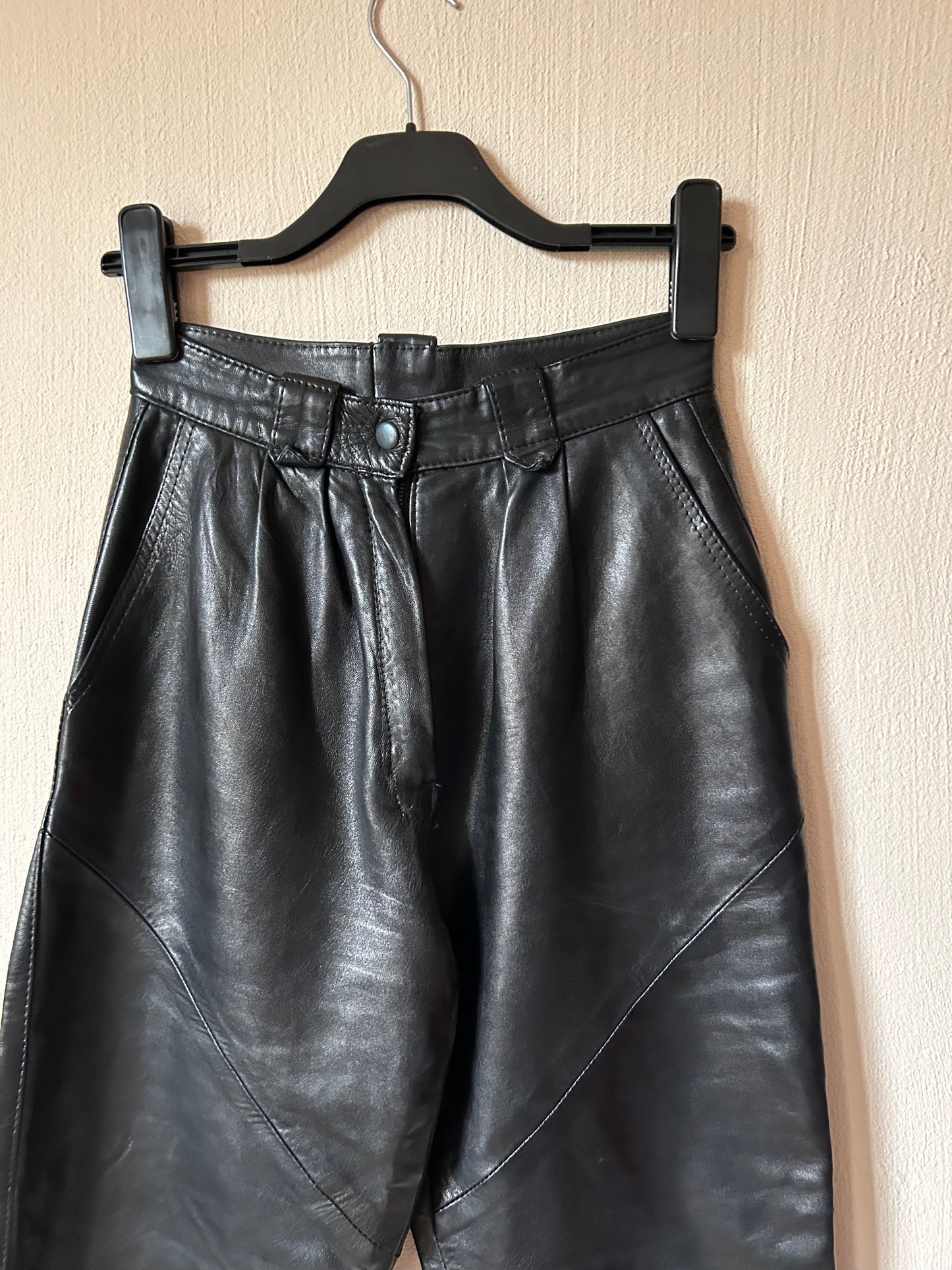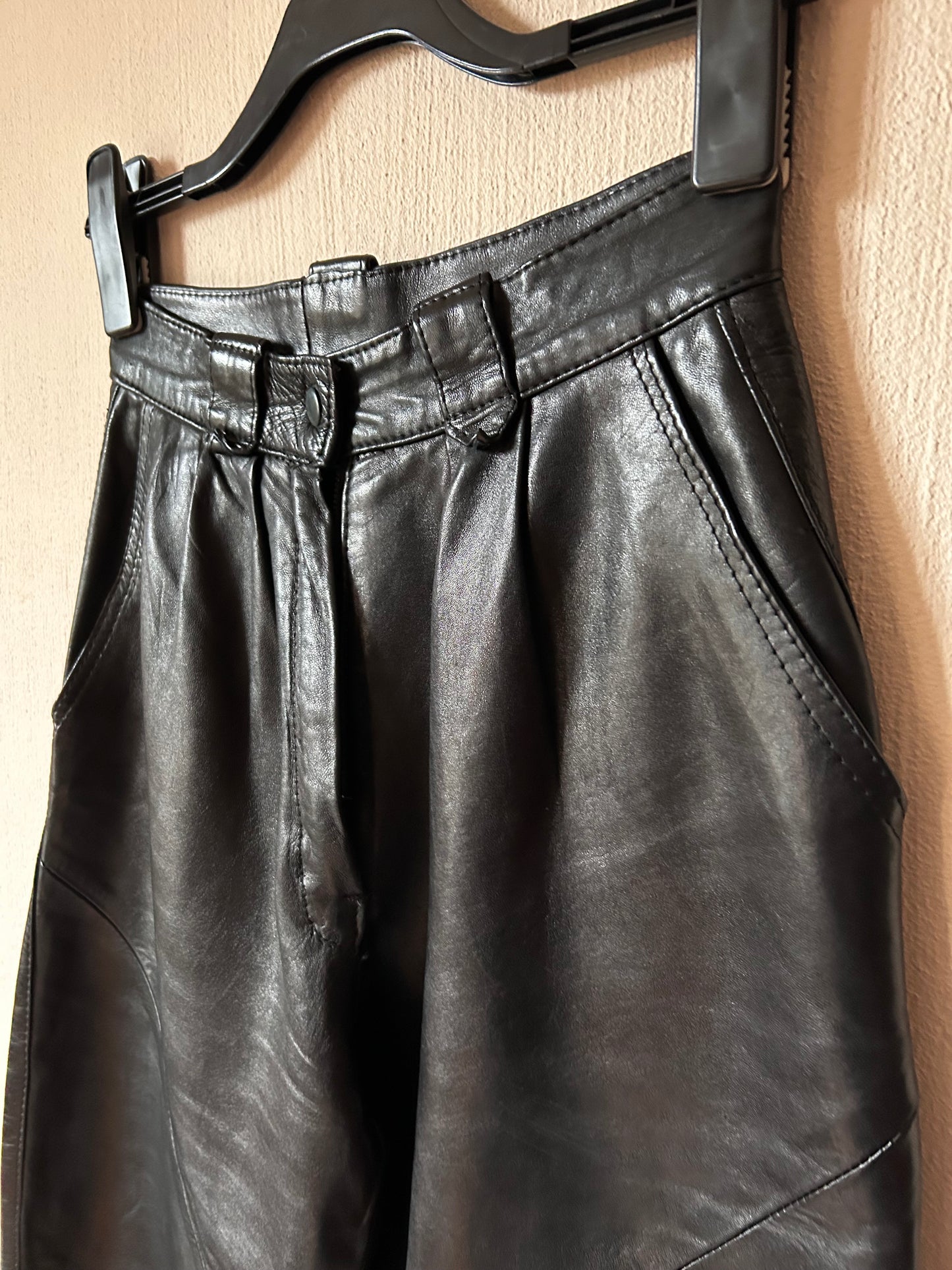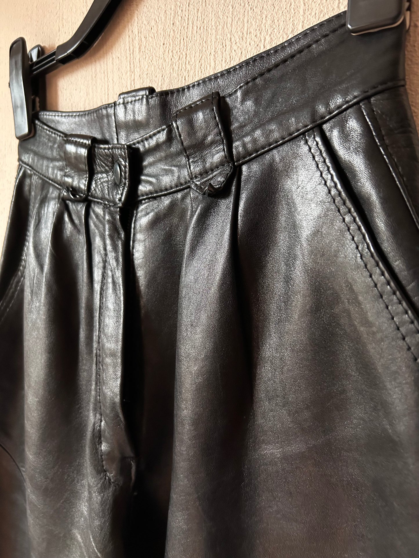 High waist pleated leather pants