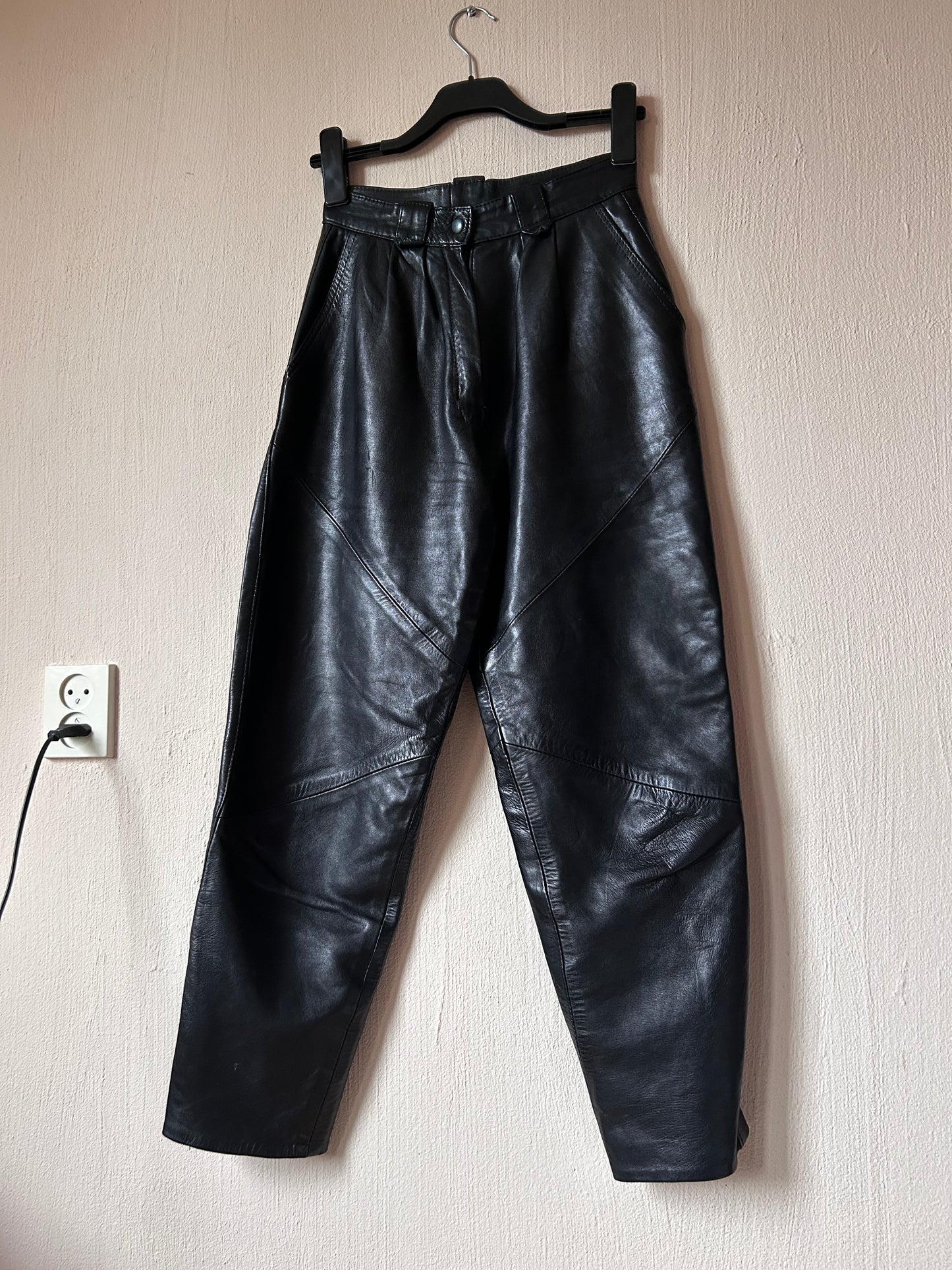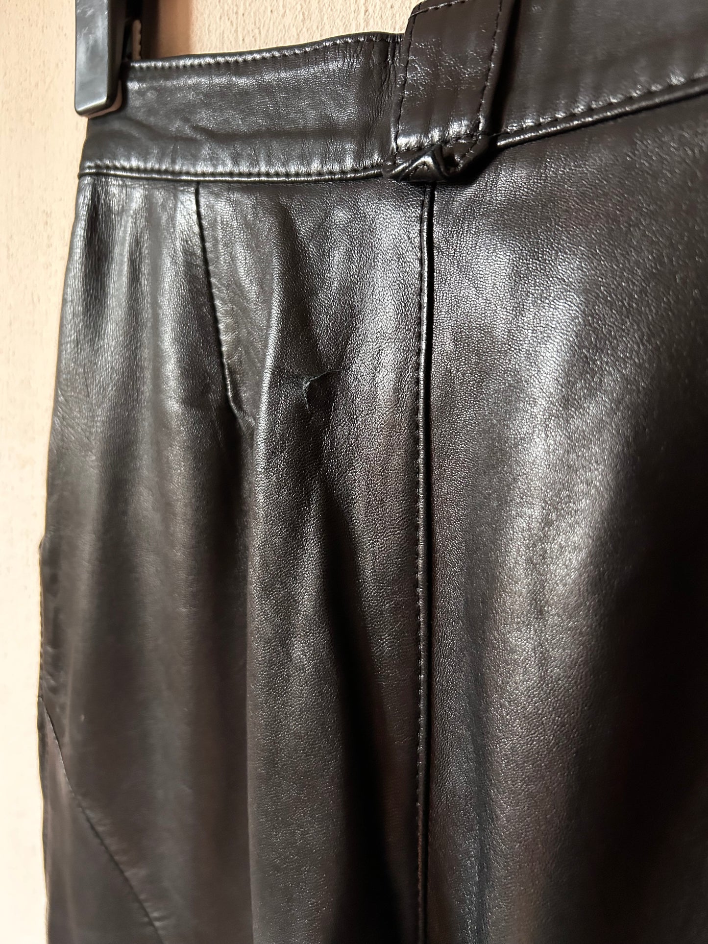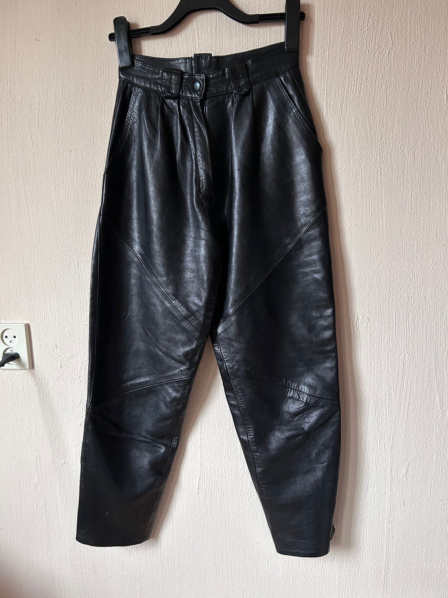 High waist pleated leather pants
