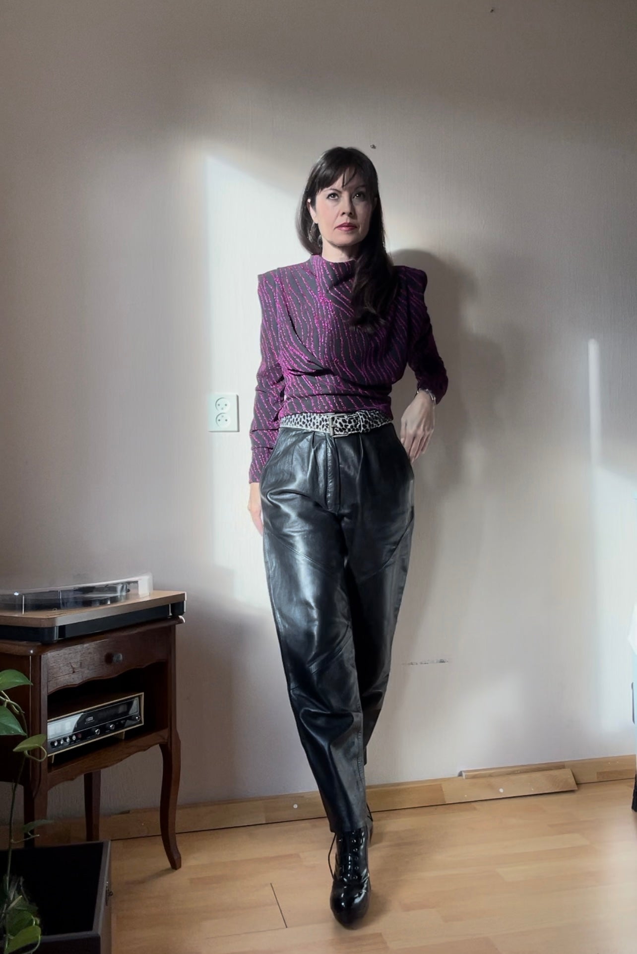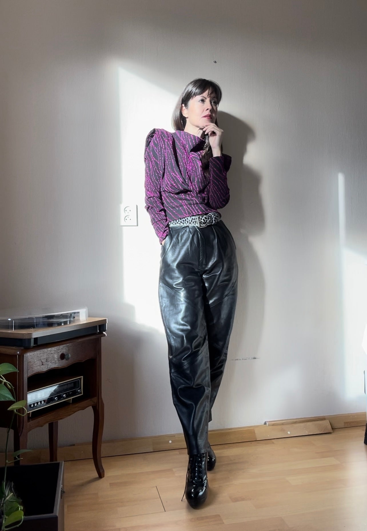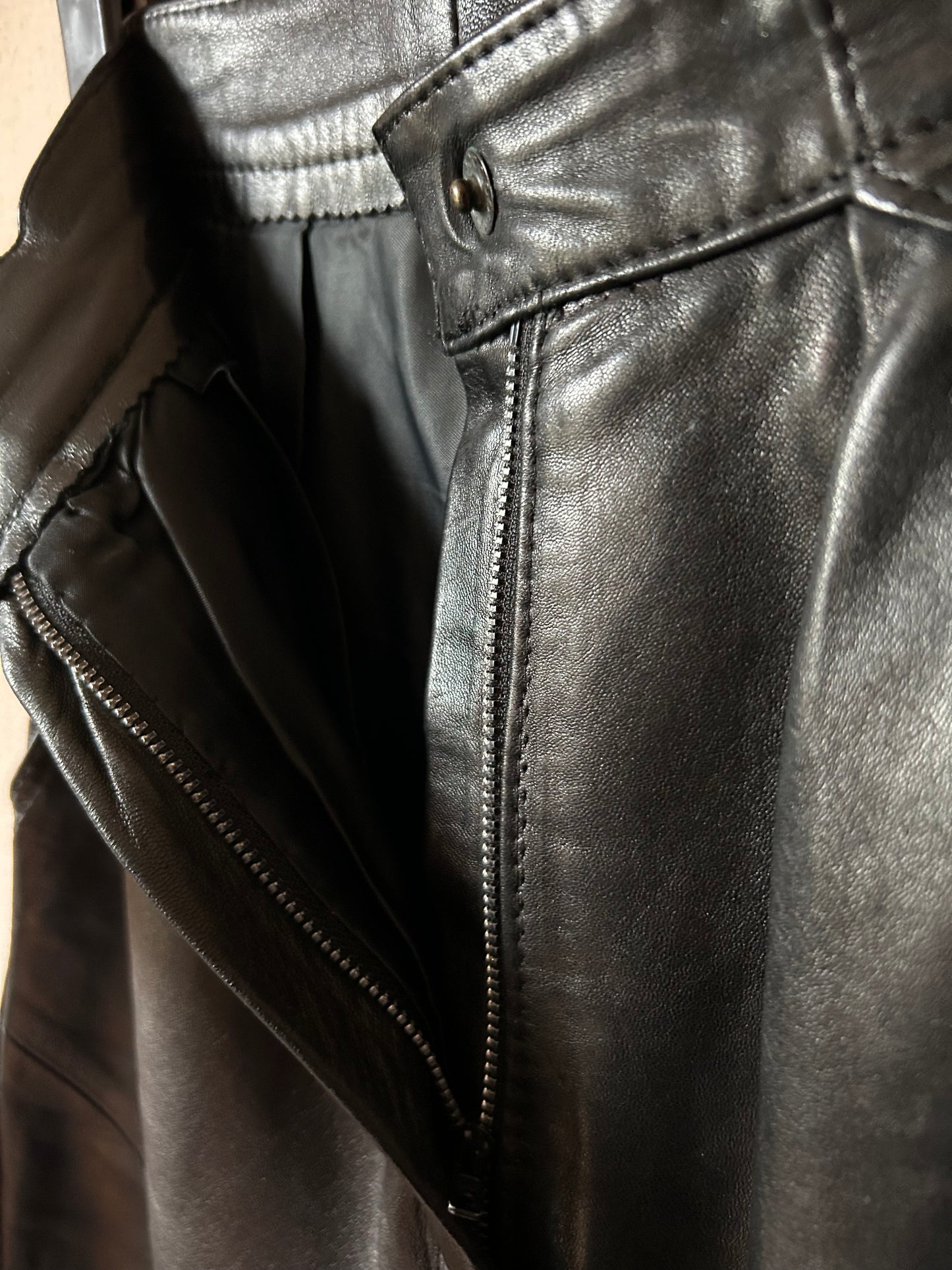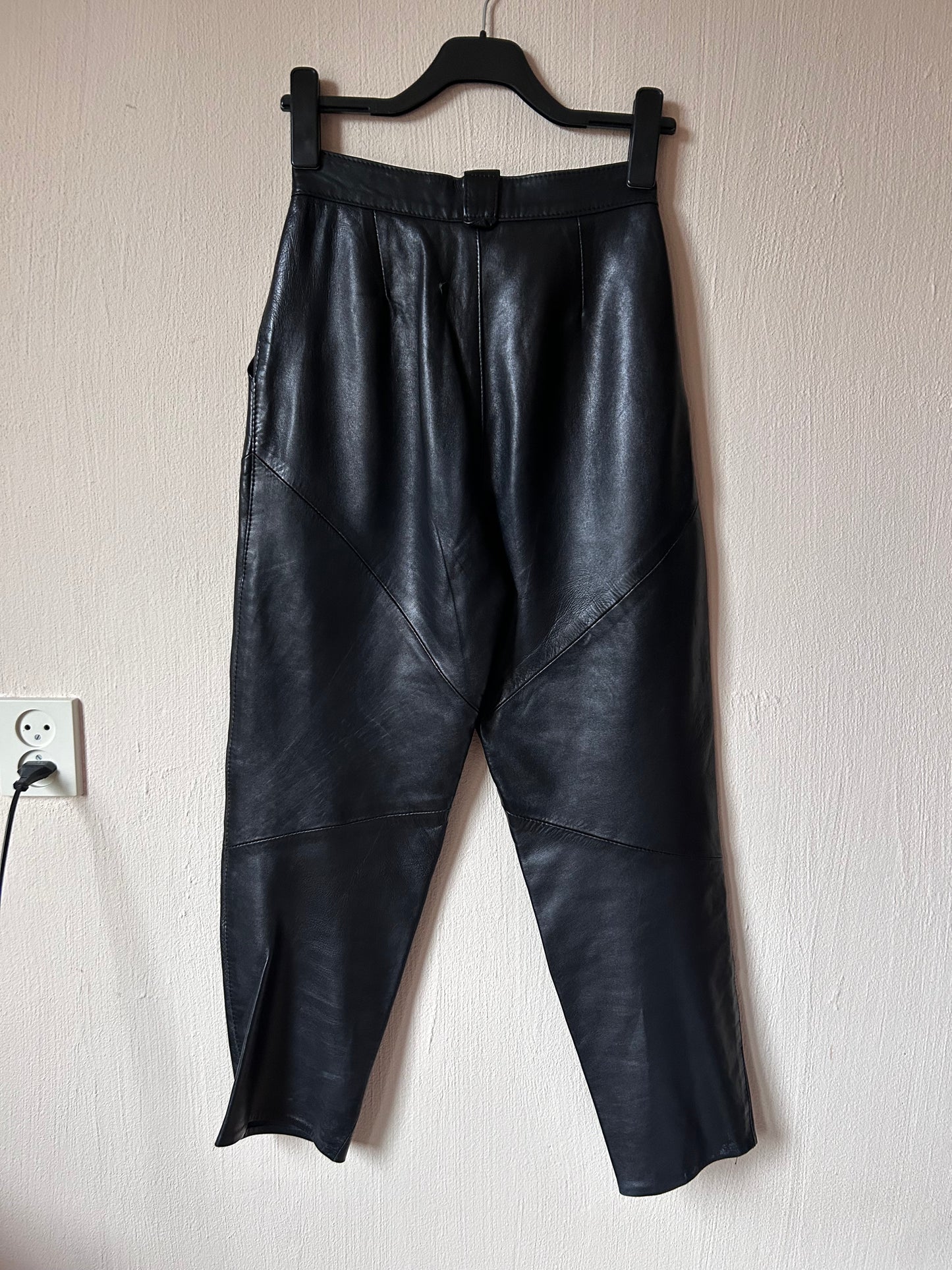 High waist pleated leather pants